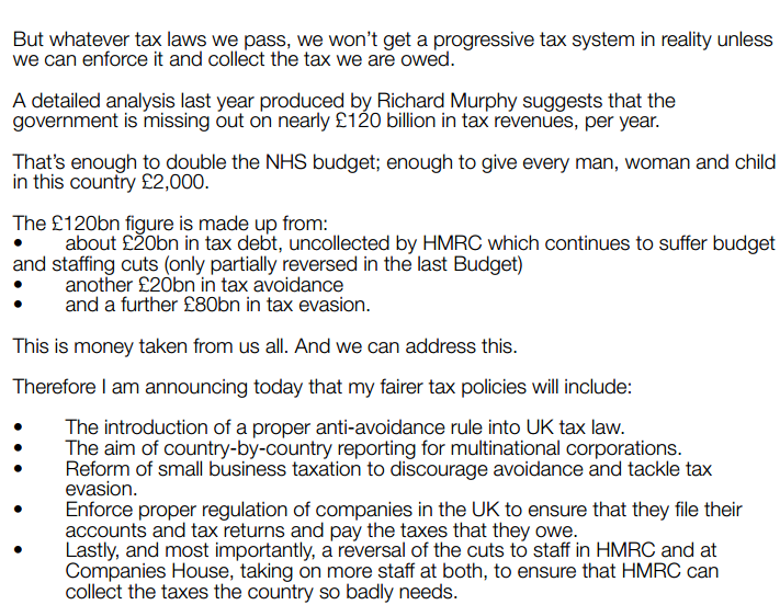 What the Corbyn Manifesto says about the Tax Gap is this: