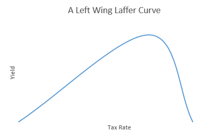 But he can’t. Tax theoreticians on the right argue a Laffer curve looks like this.