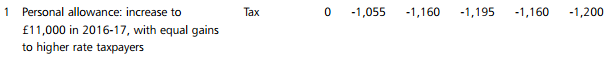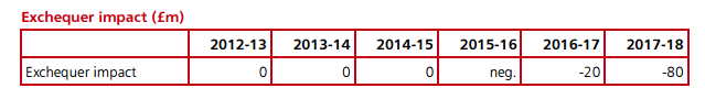 The OBR highlighted that this was only because Treasury was looking at it only over a five year time scale (an oft-resorted to piece of trickery as I noted here). Beyond that timescale, the cost would quickly rise towards £1 billion per annum (real money, even in Treasury terms: by way of illustration about what was expected to be raised by the Mansion Tax):