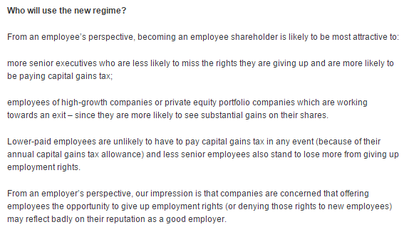 Now, I raise this because of a chance remark from a friend at a very grand firm indeed who said that he was spending all of his time constructing shares for rights schemes for private equity and MBO clients. But none, he said, for ‘normal’ people.